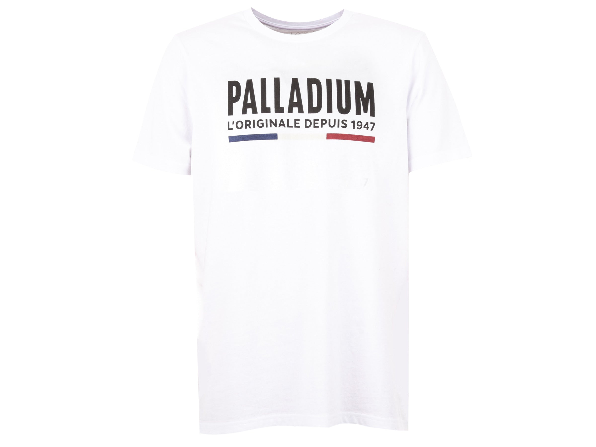 - BRANDING: Rectangular Palladium logo with tricolor line printed on chest / size label printed on inside neck