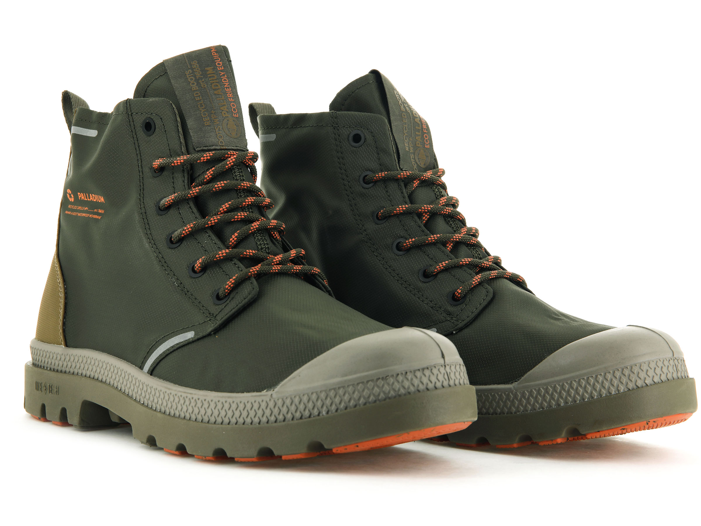 • BRANDING: Woven label folded around the tongue / Waterproof + label on heel / Palladium print on lateral quarter