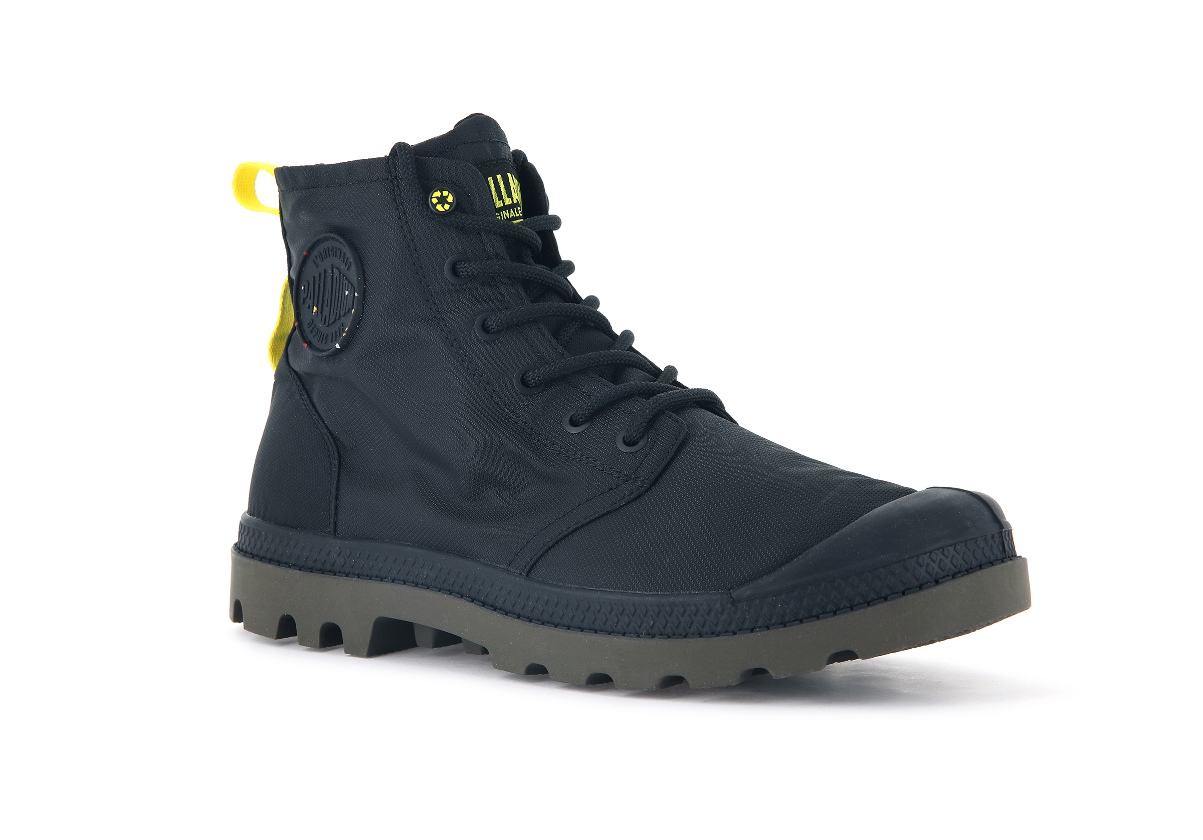 • BRANDING : Woven label on tongue / Round rubber patch on lateral quarter / Print on medial side